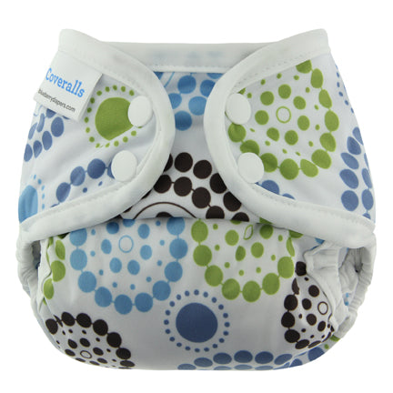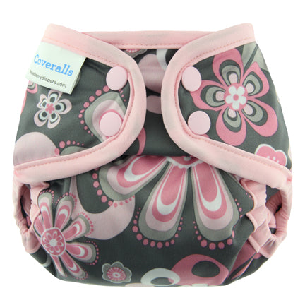 This is an adjustable nappy cover for use with your favorite prefold, flat, fitted or contoured nappies. It uses a lightweight and waterproof fabric with a laminated interior that can easily be wiped clean/dry and re-used immediately. Latex-free elastic covered by soft bindings helps prevent irritation for sensitive babies.